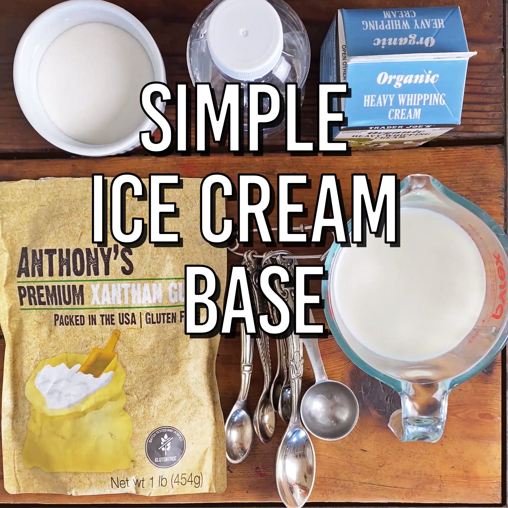 I use two different base recipes for ice cream. The first is a simple base with xanthan gum as the stabilizer.